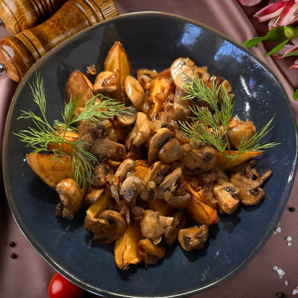 КАРТОПЛЯ ПЕЧЕНА Зі СМАЖЕНИМИ ГРИБАМИ_Доставка