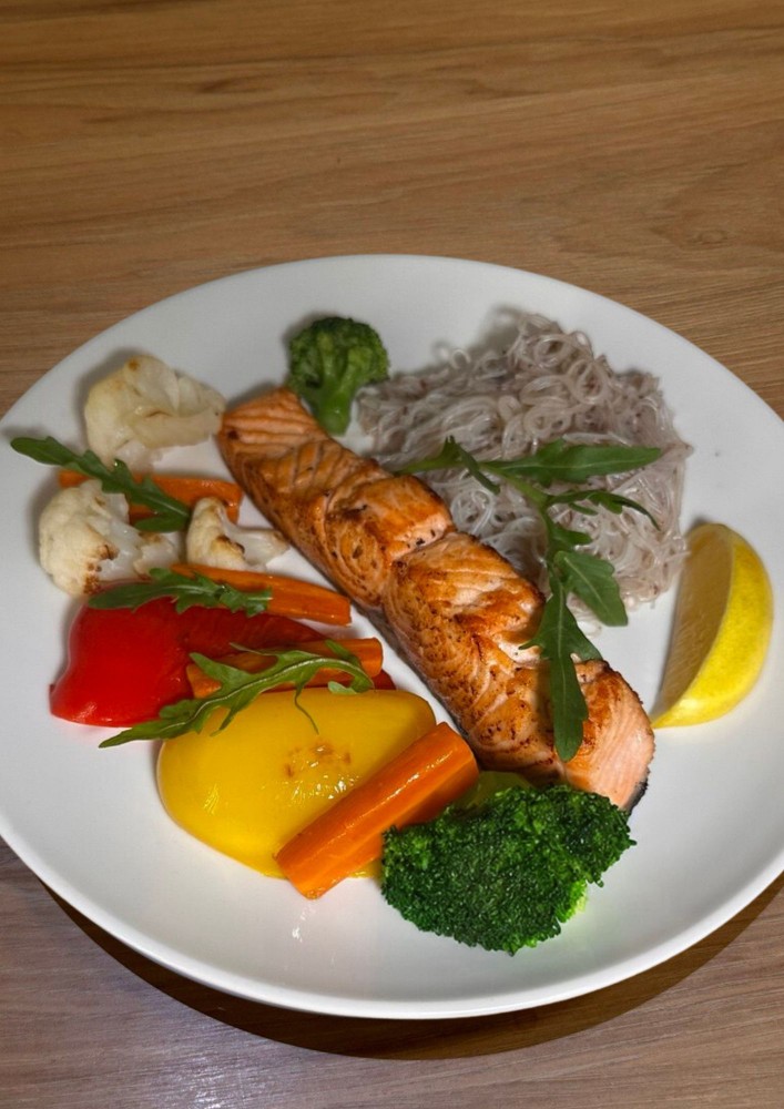 ЛОСОСЬ З ОВОЧАМИ ГРИЛЬ та ЛОКШИНОЮ_ДОСТАВКА