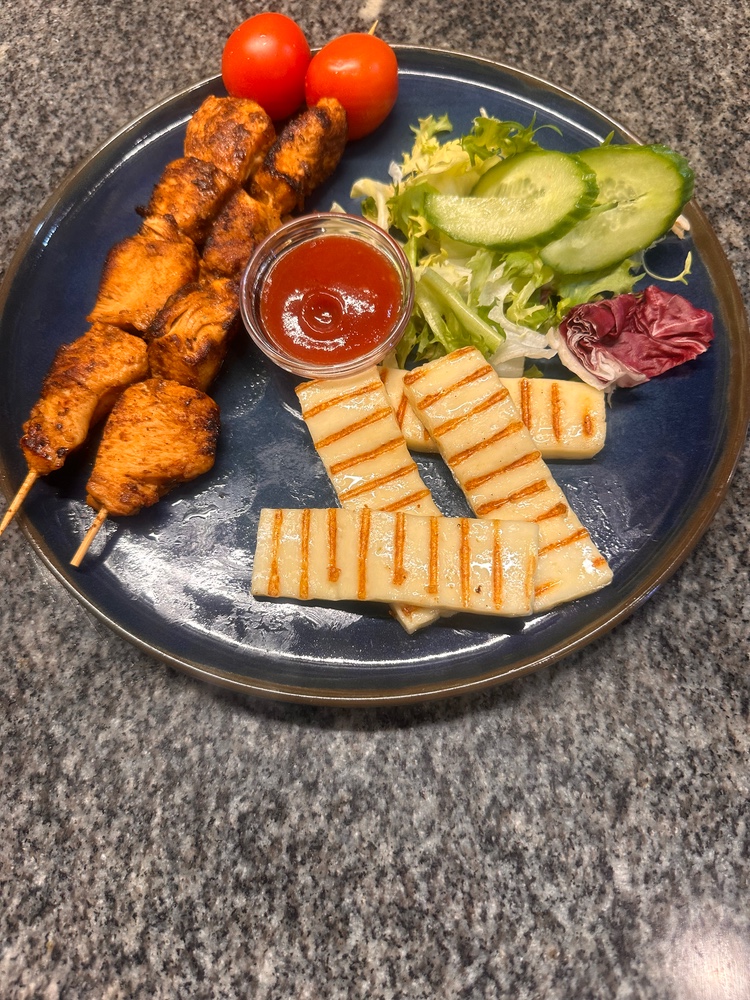 КУРЯЧІ ШАШЛИЧКИ З СИРОМ ХАЛУМІ